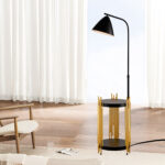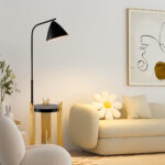 The elevated metal lampshade delivers focused illumination, perfect for reading, hosting, or adding warmth to darker corners. Integrated shelving allows you to style with purpose — art books, sculptural accents, or a curated object that reflects your taste.