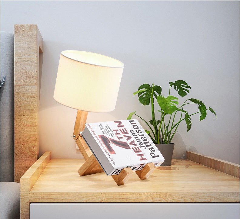 Bring warmth and natural charm to your bedroom with this creative wooden table lamp. Designed with a smooth wooden base and soft fabric shade, it delivers a cozy, ambient glow that enhances any bedside, living room, or study space.